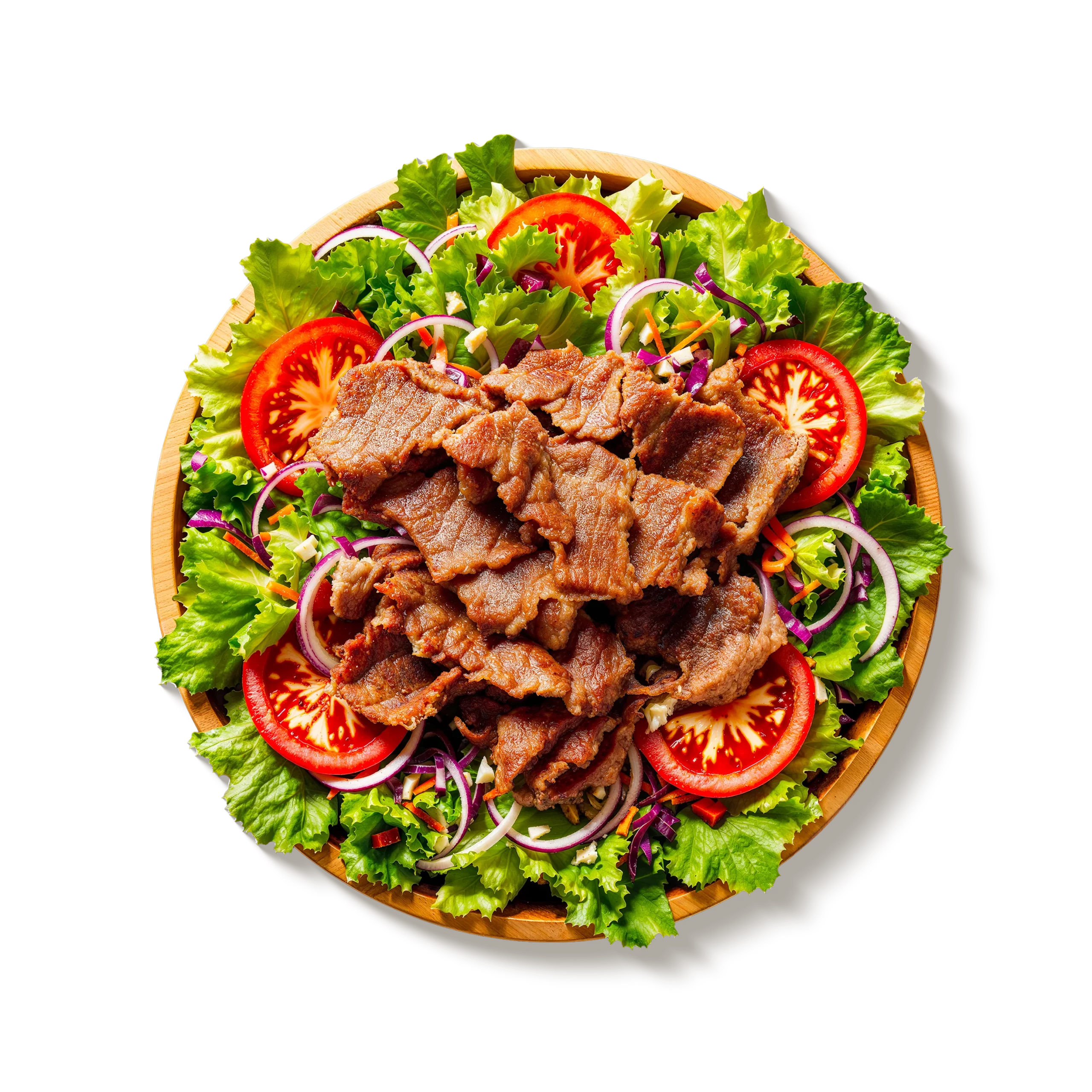 Viande kebab bœuf + poulet finement tranchée 🐄🐔 sur lit de verdure, fraîche et généreuse, sauce au choix 🥣. Légumes au choix : 🥬 salade, 🧅 oignon rouge, 🍅 tomate, 🟣 chou rouge, 🥕 carotte râpée.